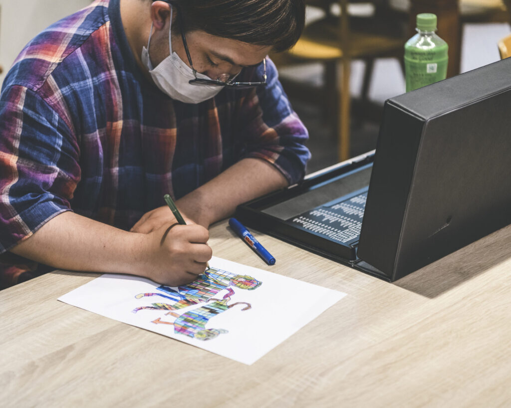 PICFAは絵を描くことを仕事にする施設なので、何かしら作品をつくっていないといけないと捉えられがちです。でも、彼が場を和ませてくれるからこそ他のメンバーがのびのびと絵を描けると考えると、チームの一員として十分彼の魅力は伝わっていると思います。ひとつの仕事を完遂できない人は使えない、という発想はここには持ち込めないんです。それがPICFAの良さでもあります。