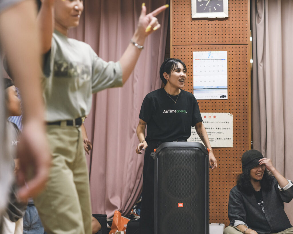 yurinasia:昨晩は茂田さんたちに最初に爆発したものを見せたいと思い、ダンスバトルから始めたんです。1時限目からいきなりバトルだったので、みんな「やばい、やばい!」となっていたと思います。でも本来は、課題を与えて考えさせる時間を最初に設けています。チーム内で話し合い、コミュニケーションをとりながら、楽曲に合わせた自分たちの踊りを30分ほどでつくるみたいな。