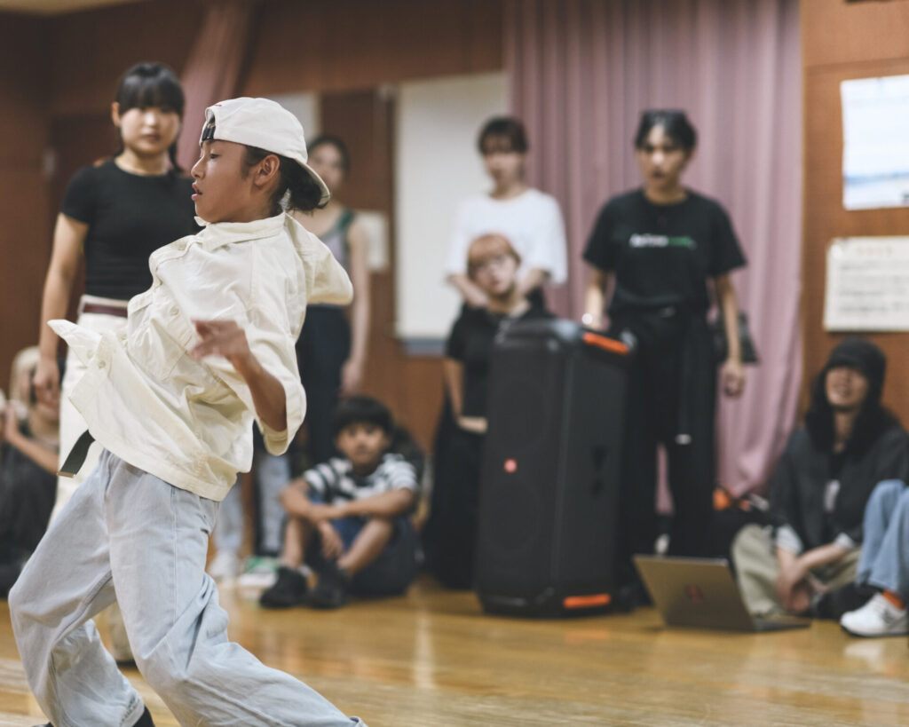 金曜日の夕刻、博多からクルマで1時間強の田舎町の“公民館”が熱狂に包まれる。大音量の音楽に合わせて飛び跳ね、背中や頭を床につけて回転する。相手を挑発するポーズもいとわず、ダイナミックな踊りが次々と繰り出される。経験の浅い子どもに対しては大人たちが身振り手振りでエールをおくる。