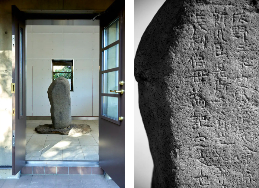 飛鳥時代の681年に⻑利(ちょうり)という名の僧によって、 ⺟を想う気持ちを意味する“⺟為記”の⽂字や⺟との系譜が刻まれたこの碑は、石碑群「上野三碑(こうずけさんぴ)」の一つでもあり、2017年にユネスコ「世界の記憶」に登録されました。